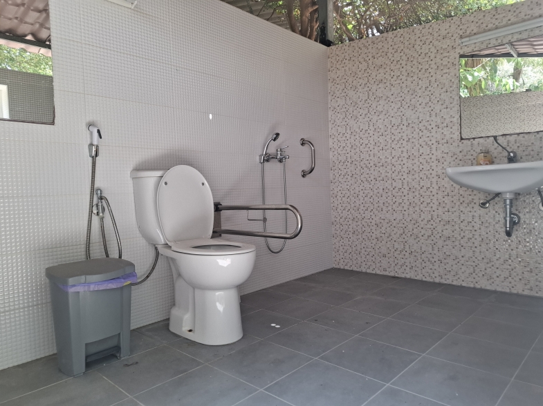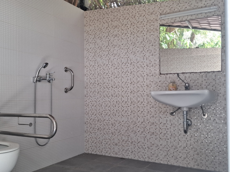 Τουαλέτες και ντουζ πλήρως ανακαινισμένα με 24 ώρες ζεστό νερό και τουαλέτα ΑΜΕΑ